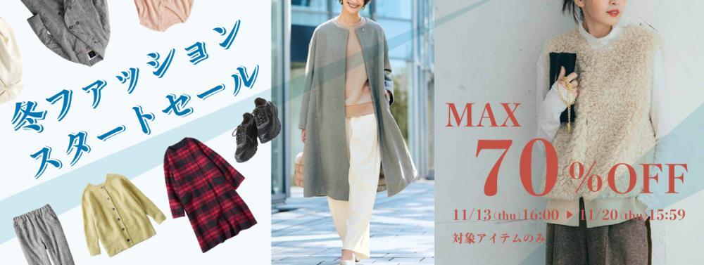 大人女子必見の冬服が最大70%オフで手に入ります。