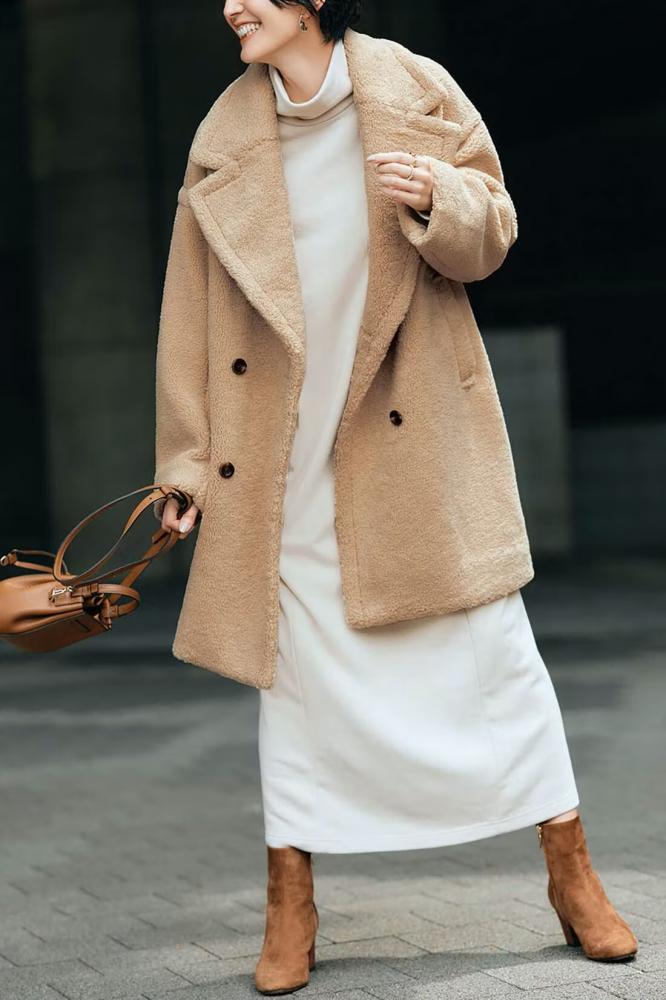 写真は「IEDIT[イディット] オーバーサイズがこなれた印象のボアPコート〈ライトベージュ〉」