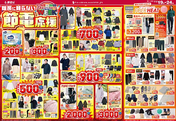 ファッションセンターしまむらが毎週発行しているチラシより、2025年11月19日から24日まで買えるお得な商品を紹介します。