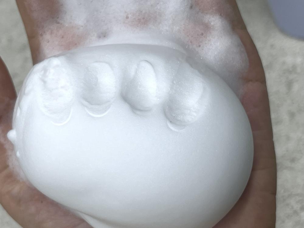 手を逆さにしても垂れてきません。指の跡が残るくらいもっちりとした泡にびっくり......。