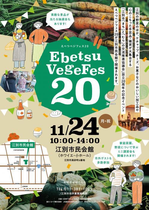 2025年11月24日、江別市民会館ホワイエ・小ホール(江別市高砂町6番地)にて「えべつベジフェス20」が開催されます。