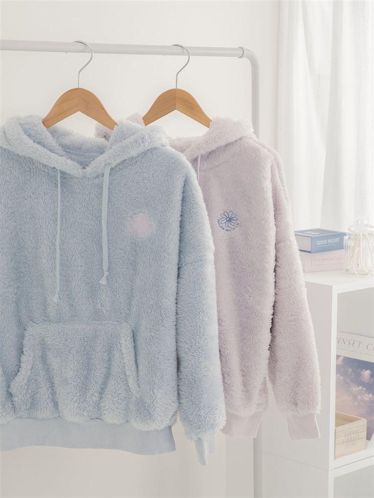 写真は「[まるで毛布!のような暖かさ]花柄ロゴ長袖ボアパーカー」