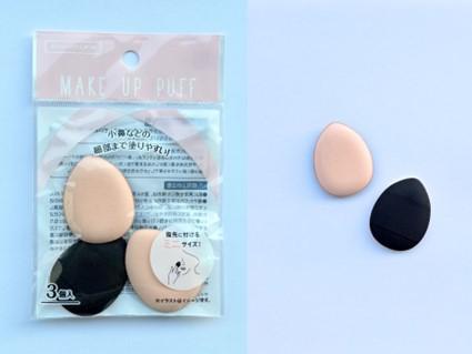 人気で欠品している商品もあり、今回パトロールした中で真っ先に購入を決めたのは、「クッションパフ しずく型 小 3P」(110円)。