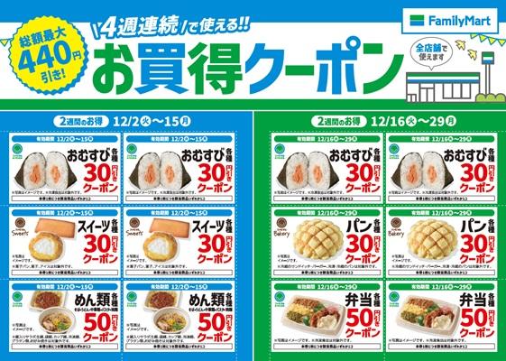 4週連続で使えるお買得クーポンをファミリーマート店舗で配布しています。