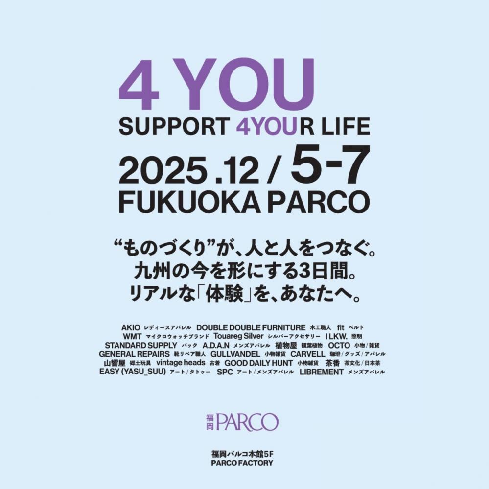 福岡PARCO(福岡市中央区天神)で、2025年12月5日から12月7日まで「4YOU / SUPPORT 4 YOUR LIFE」が開催されます。