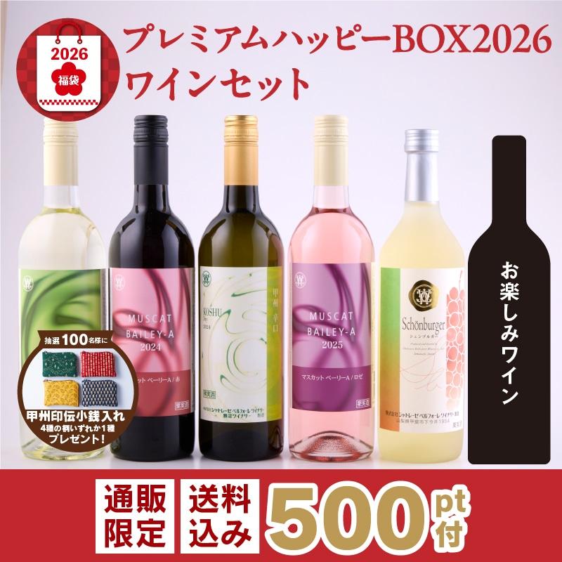「プレミアムハッピーBOX 2026」を購入した人のなかから抽選で100人に、「甲州印伝小銭入れ」(団子柄、森と水柄、アイス柄、バウムクーヘン柄のいずれか1種)が当たります。