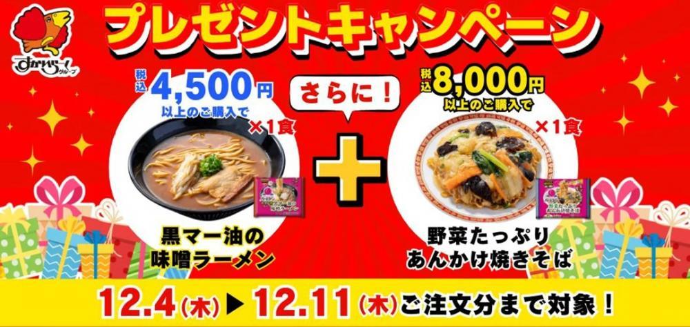 12月4日から11日までの期間に、4500円以上の買い物をした人には、「黒マー油の味噌ラーメン」1食のプレゼントがあります。