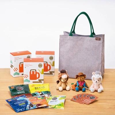 Cセットは、鳥獣戯画の動物たちがポイントのコンパクトにたためるトートバッグや手ぬぐいカレンダーが入っているのが特徴です。