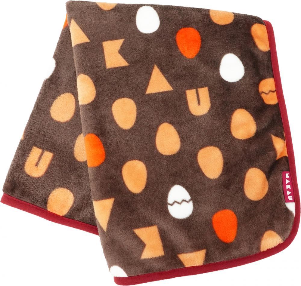 たまごデザインを総柄であしらった、ふんわりとやわらかくて肌触りの良い仕上がり。自宅や外出先、オフィスなど様々なシーンで使いやすいサイズ感と軽さです。ボタンを備え、羽織った際に前で止められる仕様となっています。