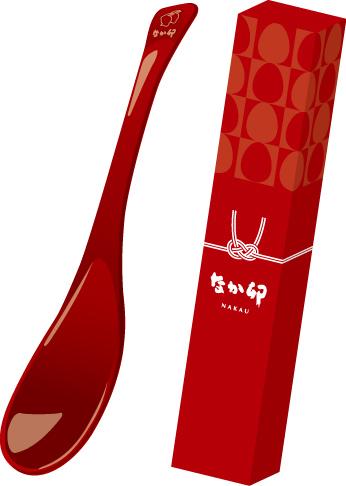 シックな赤色に、なか卯の白いうさぎのロゴが施された赤いさじは、なか卯の店舗で使用されているものと同仕様。自宅でもなか卯気分を楽しめます。長さ約20cm。