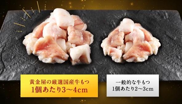 黄金屋のもつ鍋セットといえば、通常の牛もつの1.5~2倍の大きさで、国産100%の牛ホルモンを使用しているのが特徴です。ぷりっぷりの食感と贅沢な旨味、甘みを楽しめます。