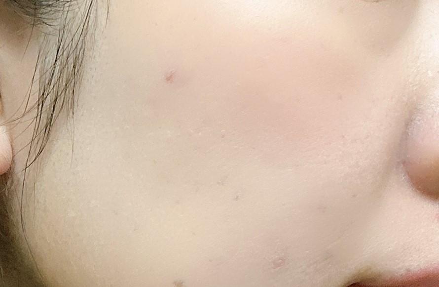 2度塗りしてからなじませたので少し濃く見えますが、肌の血色感をきちんと感じられる仕上がりに。