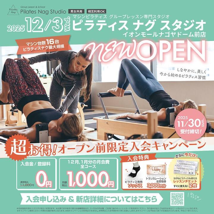 イオンモールナゴヤドーム前(名古屋市東区矢田南)1Fに、2025年12月3日「ピラティス ナグ スタジオ」がオープンしました。