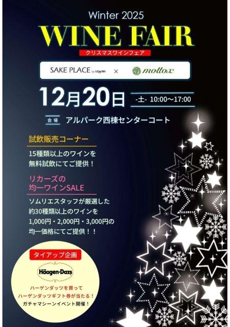 アルパーク(広島市西区草津新町)で、2025年12月20日に「クリスマスワインフェア」が開催されます。