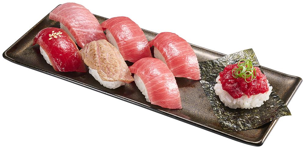 「冬のうまいもん祭」では、部位や仕立ての異なる天然本鮪を使用した7貫盛りが登場。