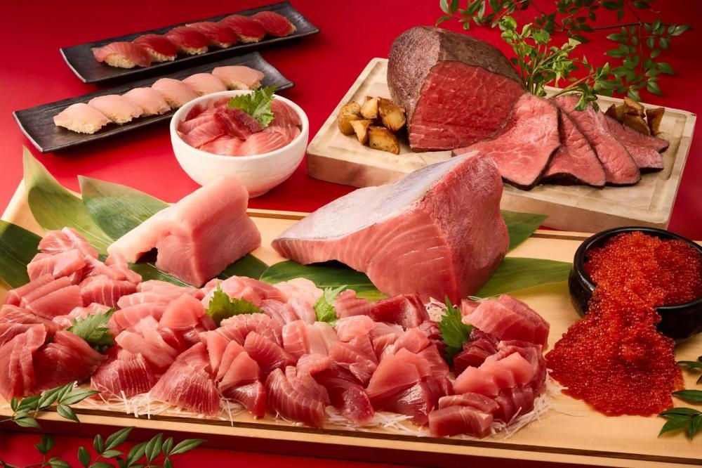 また、寿司やお造りで楽しめるまぐろや、丁寧に焼き上げたラジョウ名物の和牛ローストビーフ、本期間限定のいくら、「蟹風味の冷製フラン」(ディナー限定)など、新春を祝うのにふさわしい華やかな料理や冬の味覚を活かした料理も楽しめます。