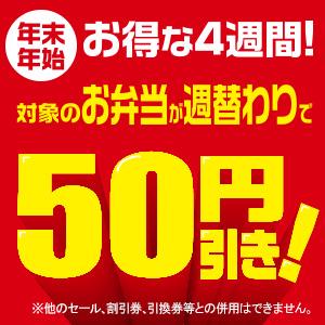 12月23日から4週間連続で、対象のお弁当が週替わりで50円引きになります。
