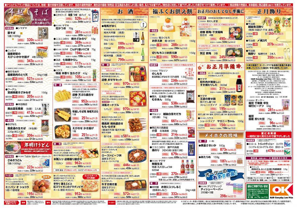 オーケーのチラシは、今回の12月25日号が年内ラスト。必要な食材をお得に買い揃えるチャンスです。