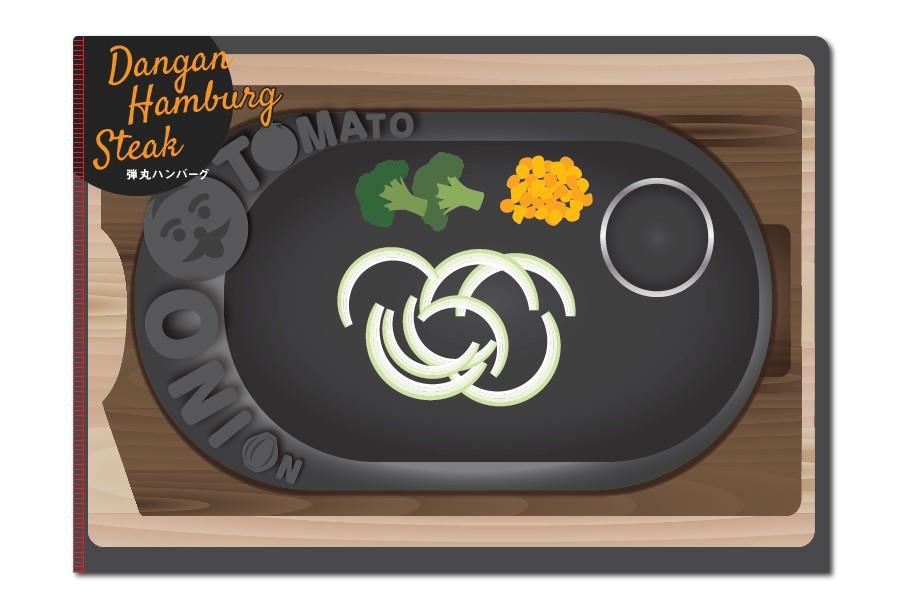 弾丸ハンバーグのポーチを乗せると、自宅やオフィスでも"トマオニ気分"を味わえるユニークなデザインのクリアファイルです。