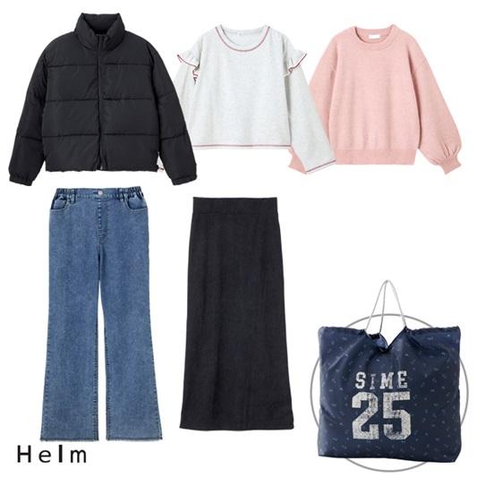 アウターも含め洋服が5点も入っています。フリルが可愛い起毛素材のスウェットや、コーデュロイ生地のナロースカートなど、使い勝手抜群のアイテムばかりで着回しが効きそうです。