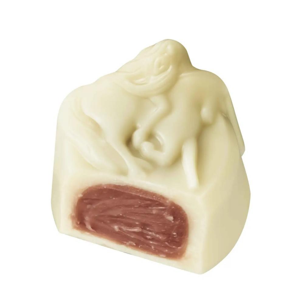 ラズベリーオレンジガナッシュをホワイトチョコでコーティングしたチョコレート。