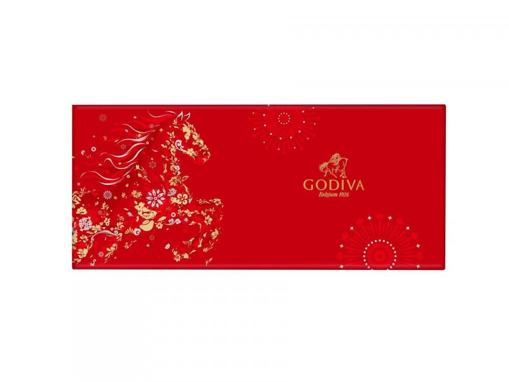 26年の干支「午」を箔で表現した華やかなボックスは、新年の贈り物にぴったり。ゴディバ ニューイヤー コレクションは6粒入、9粒入、15粒入の3種類があります。