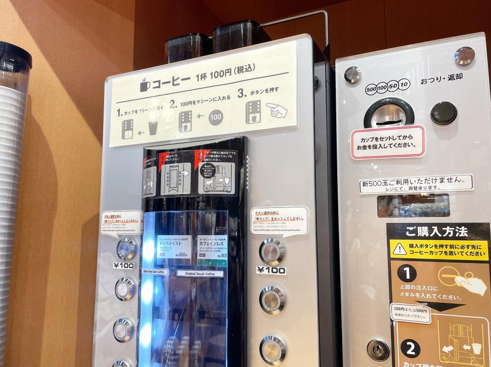 ここで味わえるのが、レジ横のセルフ式コーヒーマシンで購入できるこだわりのコーヒー。価格は1杯100円と、物価高の時代にありがたい安さ......。