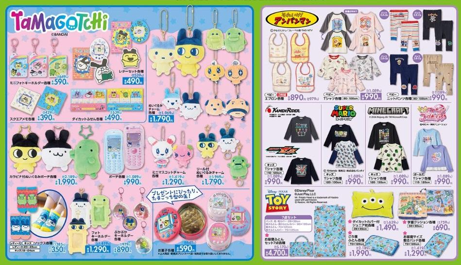 また、6日から12日向けのチラシには、人気インフルエンサーとコラボしたファッションアイテム(レディース向け&キッズ向け)、TVアニメ「おジャ魔女ドレミ」などのグッズが多数掲載されています。