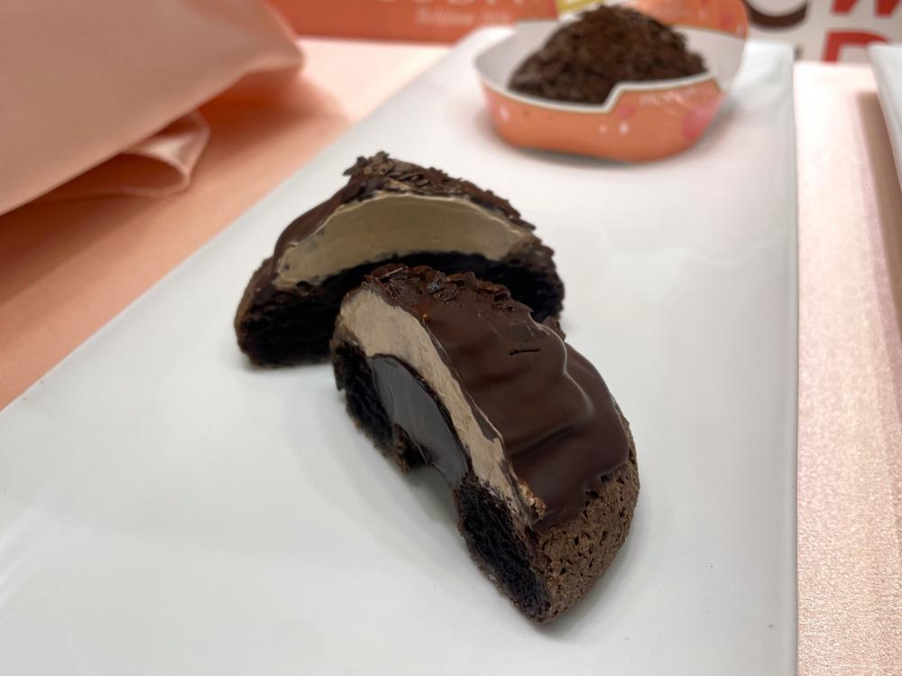 ゴディバのトリュフショコラからヒントを得たという"ショコラドーナツ生地"は、さっくり、しっとり、なめらかな食感。これがプレミアムドーナツか......と、噛んだ瞬間に伝わるその上質さに感動です。