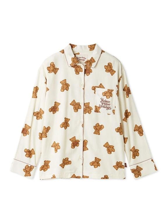 ベアモチーフのルームウェア。温かみのあるネル素材を使用しています。男性、子ども向けのサイズもあり、リンクコーデが楽しめます。