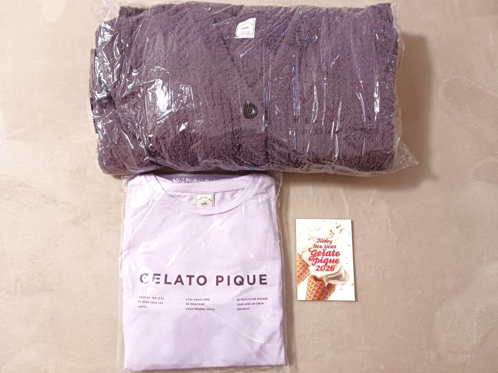 2026年版は、暖かい季節向けの薄手のルームウェア(長袖トップス&ロングパンツ)、寒い季節向けのもこもこのルームウェア(前開きトップス&ロングパンツ&靴下)の計5アイテムです。また、ソフトクリームのイラストがポップで可愛いカードも入っていました。