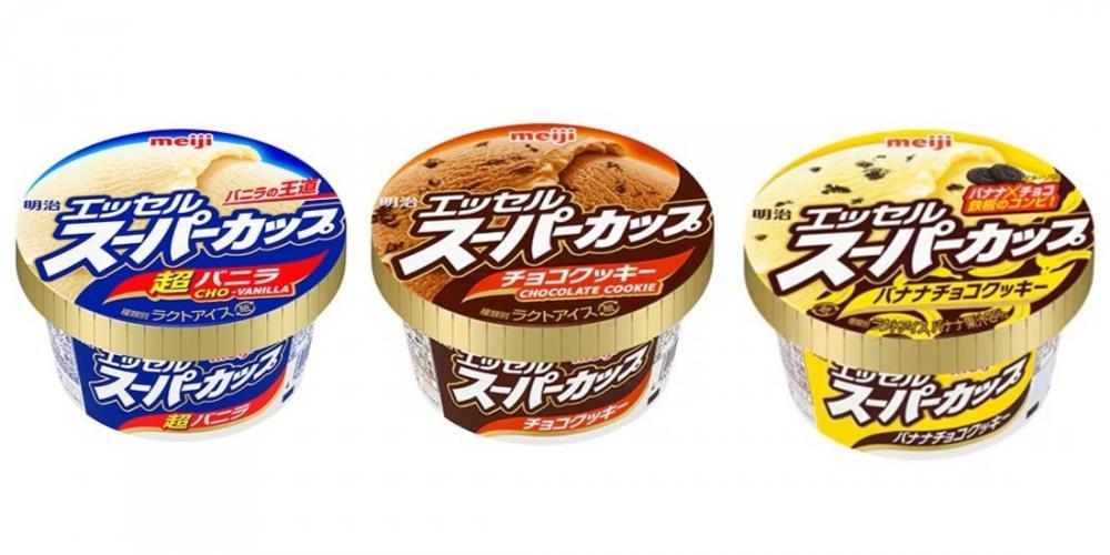 いずれか1個を購入すると、明治「エッセル スーパーカップ」の「超バニラ」「チョコクッキー」「バナナチョコクッキー」(各200ml)のいずれか1個と引き換えられる無料券がもらえます。