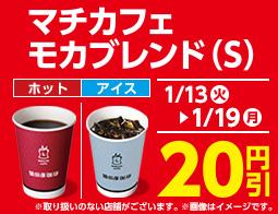 1月13日から19日までの期間、マチカフェ「モカブレンド(S)」と「アイスモカブレンド」が20円引きで購入できます。