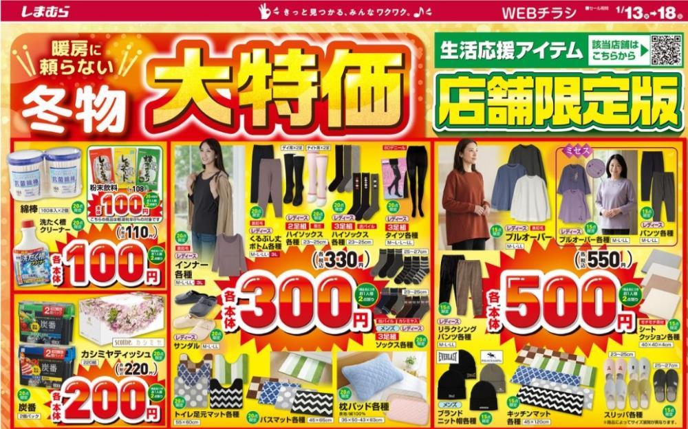 冬物を低予算で買い足したい人はチェックしてみてください。なお、上記のアイテムの取り扱いがない店舗もあります。対象店舗はしまむらグループの公式サイトのチラシ掲載ページで確認してください。