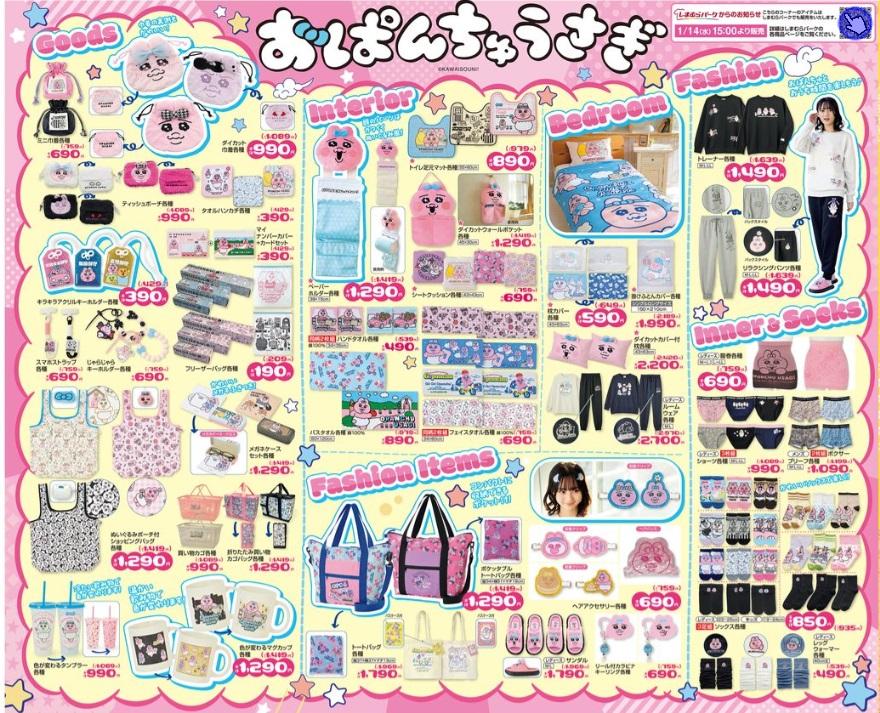 14日から、人気キャラクターの「おぱんちゅうさぎ」のグッズが多数登場しています。