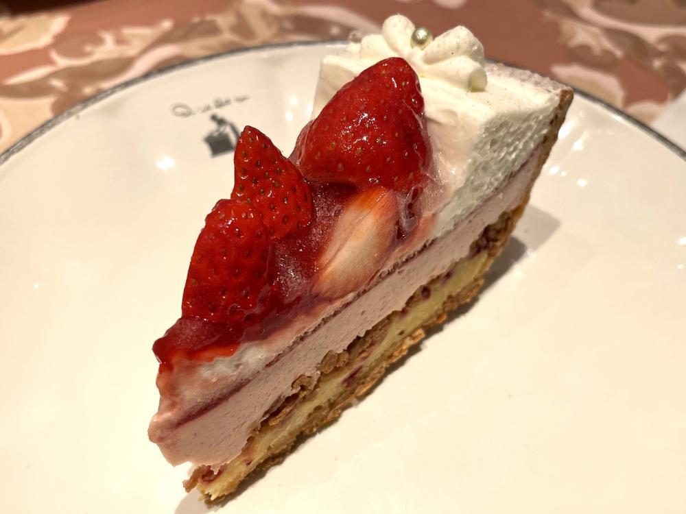 優しい甘さのタルト生地に、マドレーヌ、クレープ生地、ナッツ、いちごミルクムースといった個性豊かな層の上に、その時期にあったベストなイチゴをトッピング。