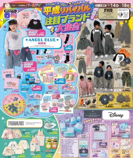 ほか、スヌーピー、ディズニープリンセス、人気ママインフルエンサー・せりなさんがプロデュースするストリートファッション「FMB」のアイテムもあります。