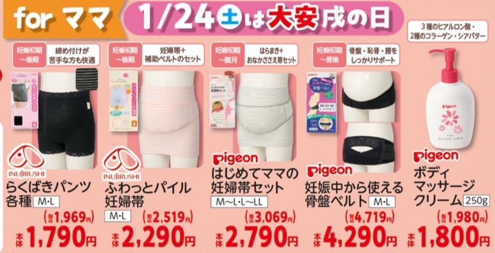 プレママやママ向けのアイテムもあります。妊婦帯や骨盤ベルトを探している人は、犬印やピジョンの商品をチェックしてみてはいかが。