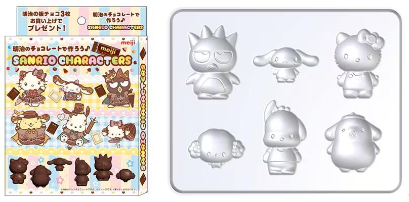 明治の板チョコを3枚購入すると、湯煎したチョコレートを流し込むだけでサンリオキャラクターズのかわいいチョコが作れるチョコ型ひとつがもらえるキャンペーンを実施中。