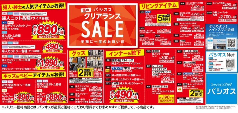 ファッションプラザ「パシオス」が毎週発行しているチラシから、注目アイテムを紹介します(御殿場店を除く)。