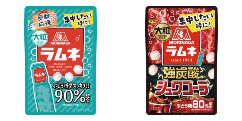 1つめの対象商品は、森永「大粒ラムネ」の「リフレッシュすっぱい梅」「強炭酸シュワコーラ」「濃い果実ぶどう」です。