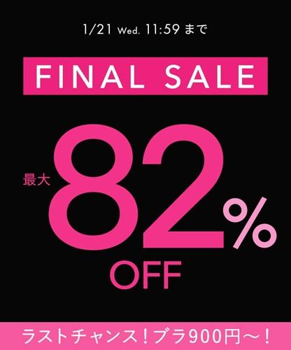 PEACH JOHN(ピーチ・ジョン)の公式オンラインストアでは、1月21日11時59分まで「FINAL SALE」を実施中です。