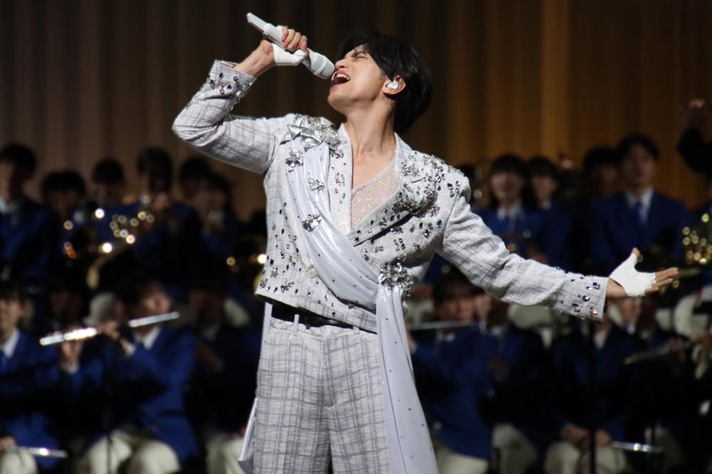 習志野高等学校吹奏楽部、そしてサプライズで登場した8人のジュニアをバックに従え、力強い歌声とダンスを届けると、会場の一体感とボルテージは最高潮に。