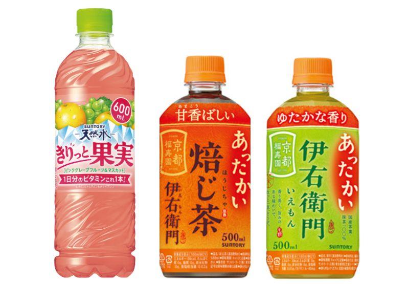 1本購入すると、「天然水きりっと果実 ピンクグレープフルーツ&マスカット」(600ml)、「伊右衛門 焙じ茶 ホット」「伊右衛門 ホット」(各500ml)のいずれか1本と引き換えられる無料券がもらえます。
