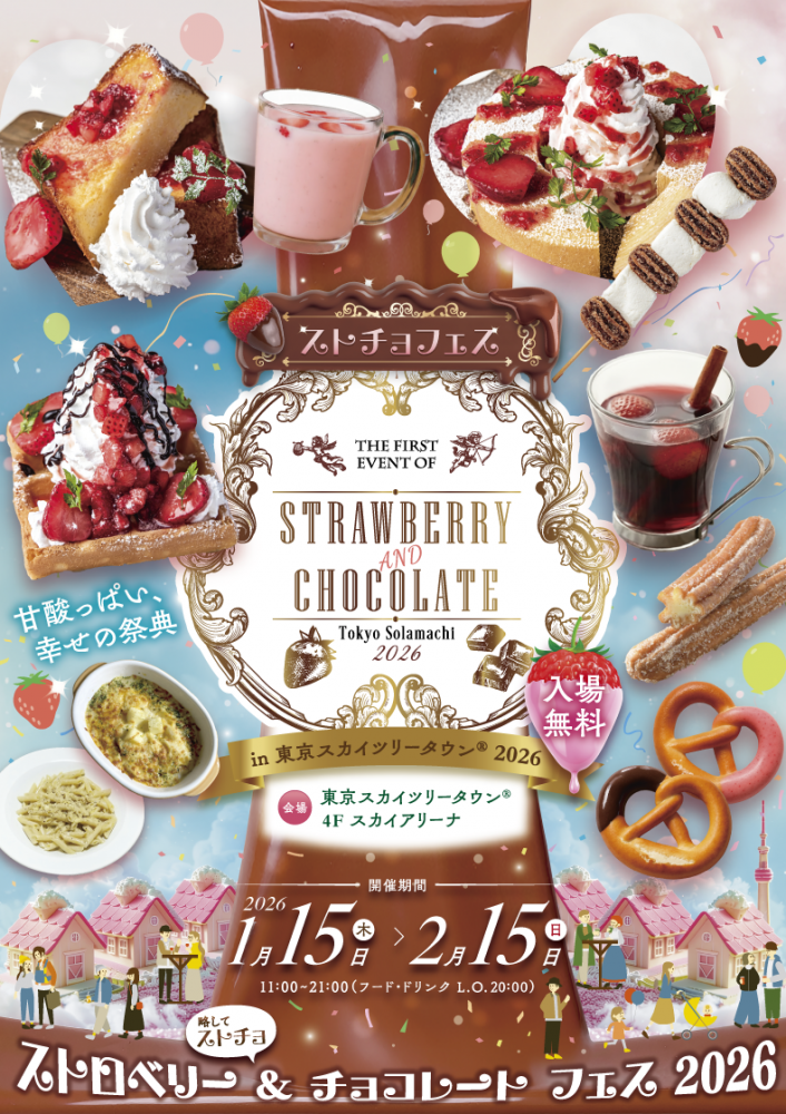 2026年1月15日から2月15日まで、東京スカイツリータウン(東京都墨田区押上1-1-2)4階「スカイアリーナ」にて「STRAWBERRY AND CHOCOLATE TOKYO Solamachi 2026」が開催されています。