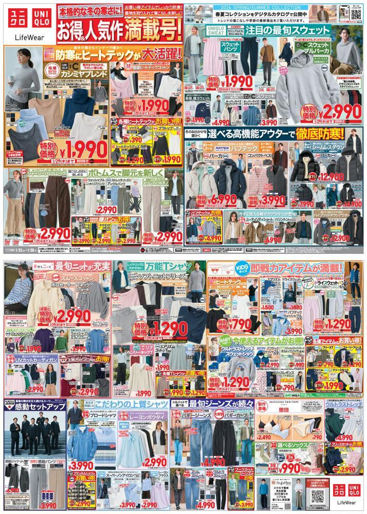 2026年1月23日から29日までのチラシは、「お得&人気作満載号」。冬から春まで活躍するカジュアルウェアが特別価格になっています。