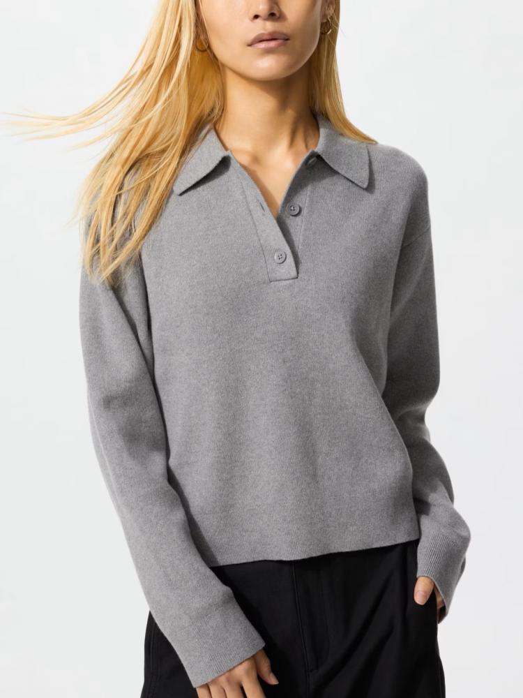 柔らかな肌触りが特徴のコットン100%セーターは、カジュアルにもフェミニンにも決まる万能ニット。大ぶりなポロ襟デザインが、さり気ない華やかさをプラスします。