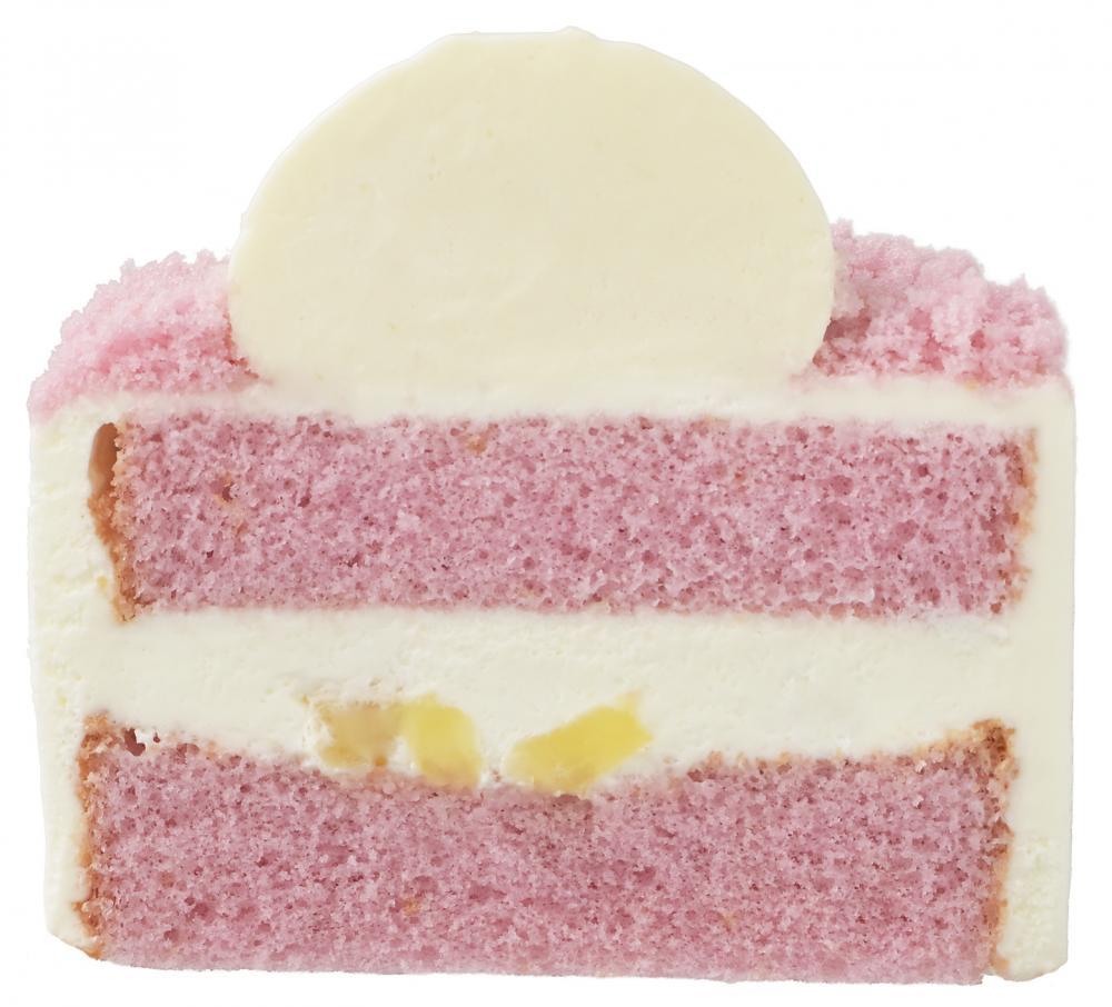 アップル風味のスポンジでアップルダイス入りのチーズ風味クリームをサンドし、ハローキティの好きな食べもの"ママが作ったアップルパイ"をイメージしたアップルカスタードクリームでハローキティの顔部分を仕上げています。