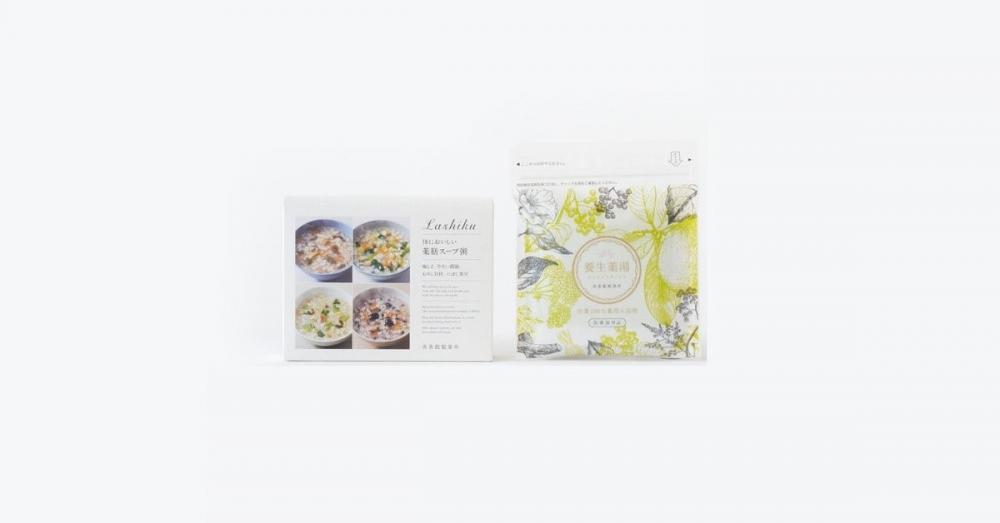 会場内で商品を購入すると、養生薬湯[医薬部外品](1包)と薬膳スープ粥(1食分)をセットにした「温活セット」がもらえます。