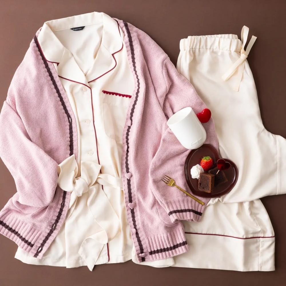 柔らかで着心地のよいカーディガン。バレンタインムードを感じるデザインです。